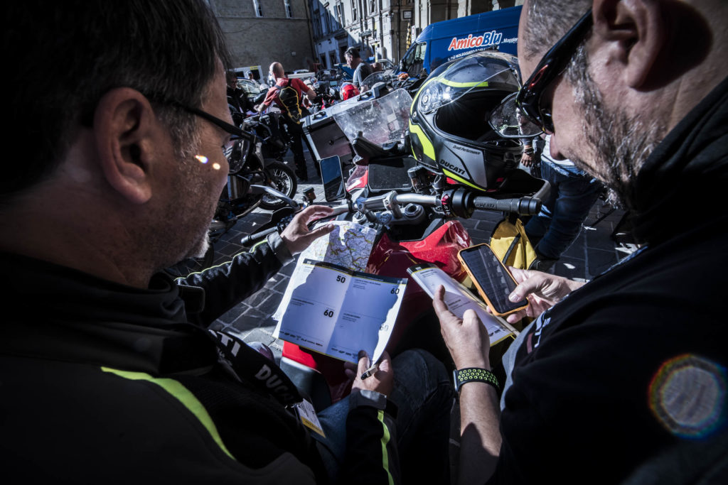 L’unità di misura non è il tempo e nemmeno la velocità, ma il numero di curve affrontate. Nel road book cartaceo sono indicati il punto di partenza (Misano Adriatico, con transito a Misano World Circuit) e il punto di arrivo (Bologna), oltre ai check point di passaggio obbligato.
