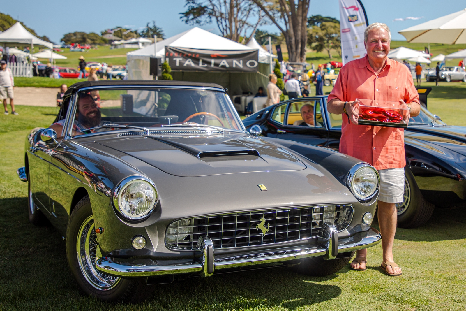 Best in Show Award, il momento di chiusura, che ha regalato maggiore emozione a tutti i presenti. Il premio disegnato da Samuel Chuffart, VP e Capo del Design di Icona Design Group e realizzato da Egidio Reali di MR Collection è stato consegnato a Ron Corradini (Newport Beach, CA) per la sua Ferrari 250 GT II Cabriolet del 1960, restaurata da Hot Rods & Hobbies.