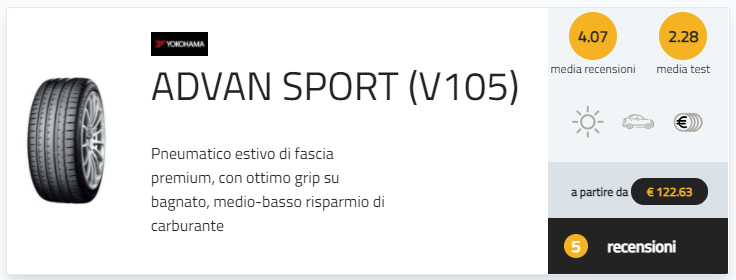Seguendo il concetto introdotto dall’Advan Sport V105 di fornire un perfetto equilibrio tra prestazioni di guida, comfort e sicurezza, le prestazioni della nuova gomma su asciutto, bagnato e nella fase di sterzata superano gli alti livelli raggiunti dal suo predecessore.