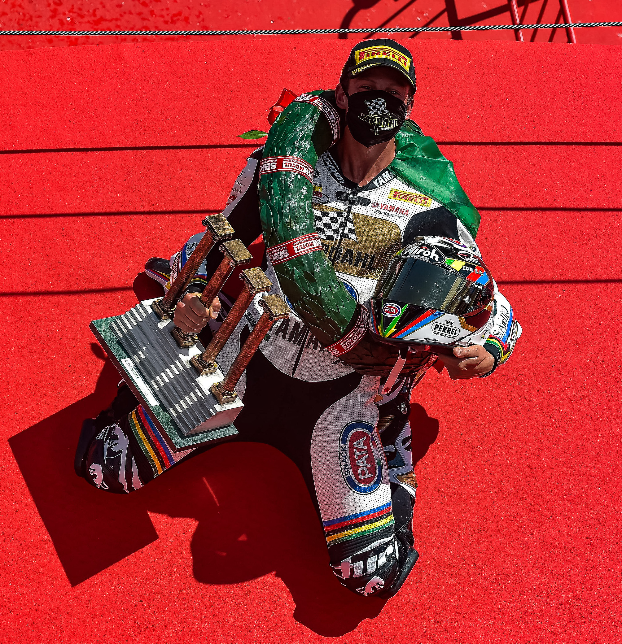 La vittoria del titolo mondiale è stata celebrata da Andrea indossando nel giro d’onore un casco Airoh con una grafica dedicata, appositamente realizzata per l’occasione, dove l’iride non poteva che essere l’elemento dominante.