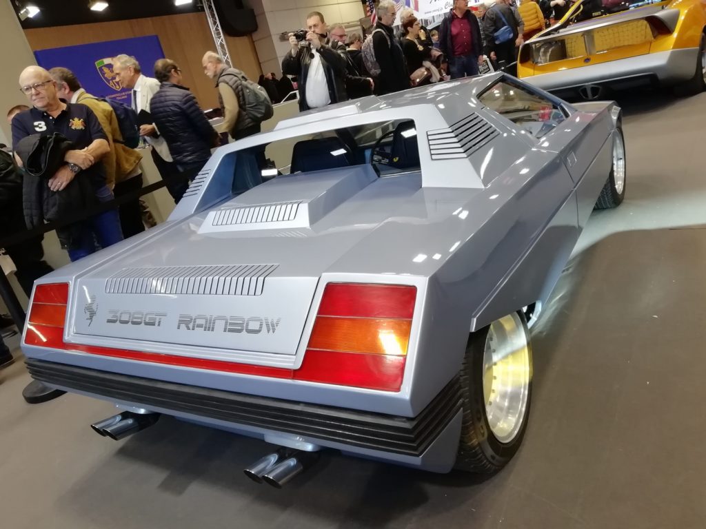 Dopo il modello di serie 308 GT4 già realizzata da Nuccio (una delle prime Ferrari non disegnate da Pininfarina), Bertone si lancia in un esercizio di stile sullo stesso telaio. Il risultato è l’avveniristica Rainbow, una “targa” che fa scivolare il tetto dietro gli schienali dei sedili. La linea è compatta e filante, molto segmentata, a tratti volutamente disarmonica: un vero e proprio taglio netto con le linee del passato.