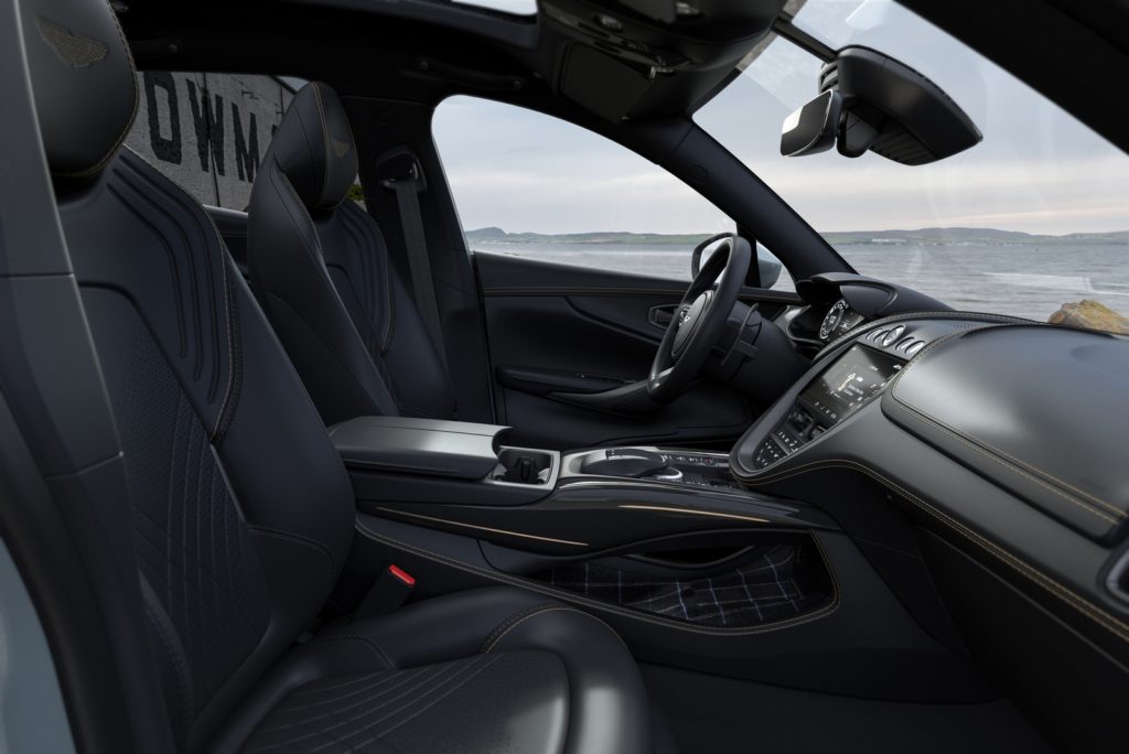 Inoltre, l’interno contiene molti dettagli di design Q by Aston Martin come i porta bicchieri in rame lucido realizzati in rame riciclato dall’originale Bowmore. L’intarsio del rivestimento della console centrale, nero lucido, presenta dettagli in lamina di rame su misura posati a mano. Ogni auto viene fornita con una selezione di accessori Q by Aston Martin appositamente progettati, come la coperta da picnic in tweed Bowmore e un sofisticato borsone in pelle.