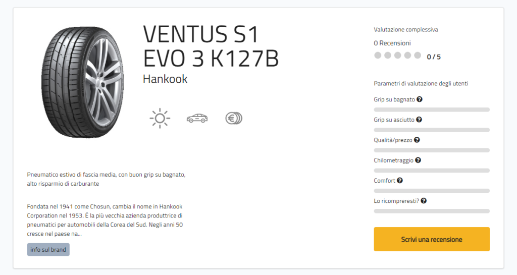 Hai provato Hankook Ventus S1 evo 3? Posta la tua recensione!