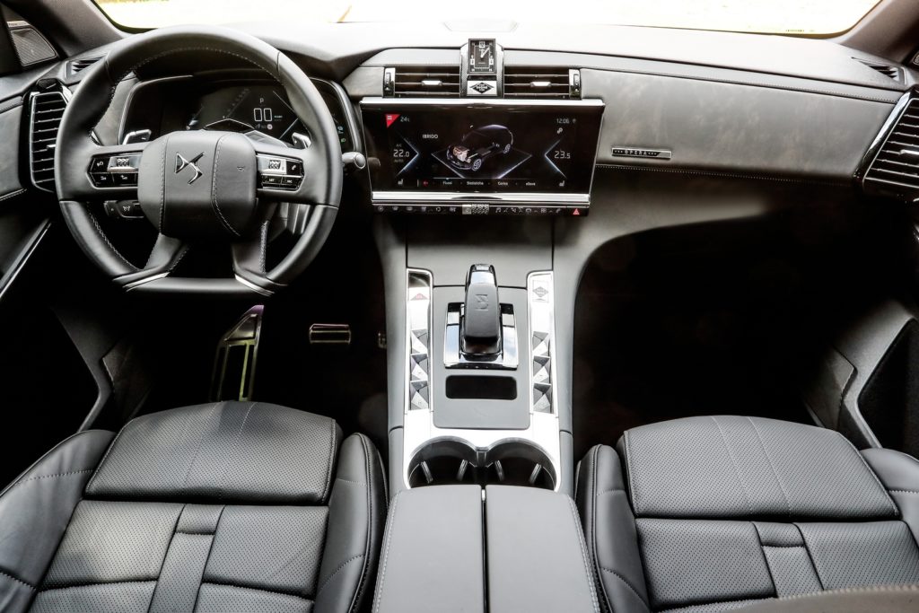 Quando si preme il pulsante di accensione, sul quadro strumenti appare il messaggio “Ready” per avvertire che la Ds è pronta a partire. Una segnalazione fondamentale, poiché non ci sono rumori o vibrazioni. Le modalità di guida sono cinque. L’Elettrica, se la batteria è carica, è predefinita e viene indicata come detto dal Led blu acceso. In modalità Ibrida, la Ds gestisce in maniera autonoma la scelta tra alimentazione a benzina, elettrica oppure entrambe. La Sport consente di mettere alla frusta i 300 cv di potenza combinata e disporre di un assetto enfatizzato dalle sospensioni attive.