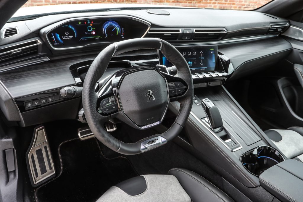 Se all’esterno Peugeot 508 Hybrid non si differenzia, come detto, dalla sorella a motore endotermico, gli interni strizzano decisamente l’occhio al mondo dell’ibrido. Oltre alla qualità dei materiali soft touch, con pelle abbinata a legno e pelle con Alcantara per i sedili, ciò che colpisce sono infatti il cruscotto digitale e lo schermo touch al centro della plancia: qui si trovano tutte le indicazioni sulle funzionalità del sistema ibrido, dallo stato della batteria all’autonomia rimasta, dalle statistiche di consumo al monitoraggio dei flussi di energia. I consueti tasti a pianoforte completano il tipico Peugeot iCockpit, in un interno dotato di numerosi vani portaoggetti e spazio adeguato anche per i passeggeri dei sedili posteriori, nonostante la linea fastback.