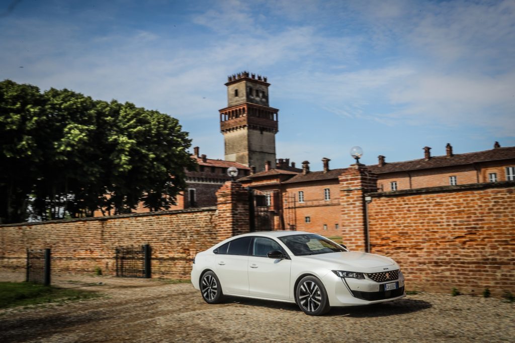 Proprio quest’ultima è stata oggetto della prova di Safe-Drive nell’affascinante contesto di Chignolo Po, dove 508 Hybrid si è fatta riconoscere per le linee filanti, il frontale aggressivo, le proporzioni quasi da coupé e la firma luminosa ben definita. Fin qui, però, nulla di nuovo. Rimangono invariate anche le dimensioni, dalla lunghezza di 475 centimetri alla larghezza di 186 e altezza di 142; non cambia nemmeno la capacità del bagagliaio, di 487 litri. Insomma, la 508 ibrida non si discosta esternamente dalla sua variante termica, con la quale condivide la stessa piattaforma Emp2. A un occhio attento, tuttavia, non possono sfuggire i loghi Hybrid sulla carrozzeria e lo sportellino per la ricarica della batteria…
