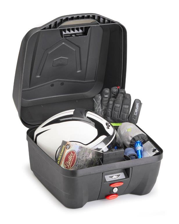 Top case K320NMAL 32 litri è perfetto per riporre il casco integrale o modulare oltre ad altri oggetti e accessori utili, questo nuovo top case è in grado di conciliare dimensioni ridotte con un ampio spazio interno. Il sistema di chiusura Micro 3 permette di chiudere il bauletto senza l’uso della chiave esercitando una semplice pressione sul coperchio. Provvisto di piastra e kit universale per il montaggio sul mezzo. Prezzo: € 69
