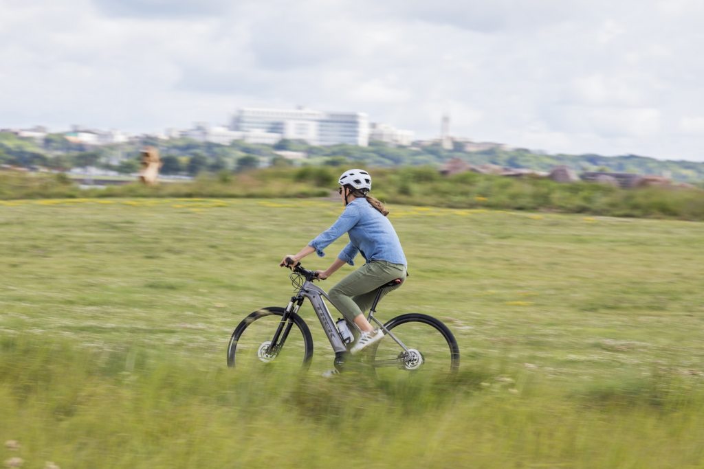 Ciò che però fa davvero la differenza è il motore. La District + 1 dispone di un motore Bosch Active Line (250W, 40Nm) che eroga in modo fluido e progressivo la potenza necessaria per raggiungere la velocità di crociera di 25 chilometri orari. L’utilizzo del motore è regolabile attraverso il display retroilluminato Purion che dispone di tachimetro indicatore degli intervalli manutenzione e autonomia della batteria. Il design del regolatore permette di scegliere l’assistenza energetica ideale senza dover staccare la mano dal manubrio.