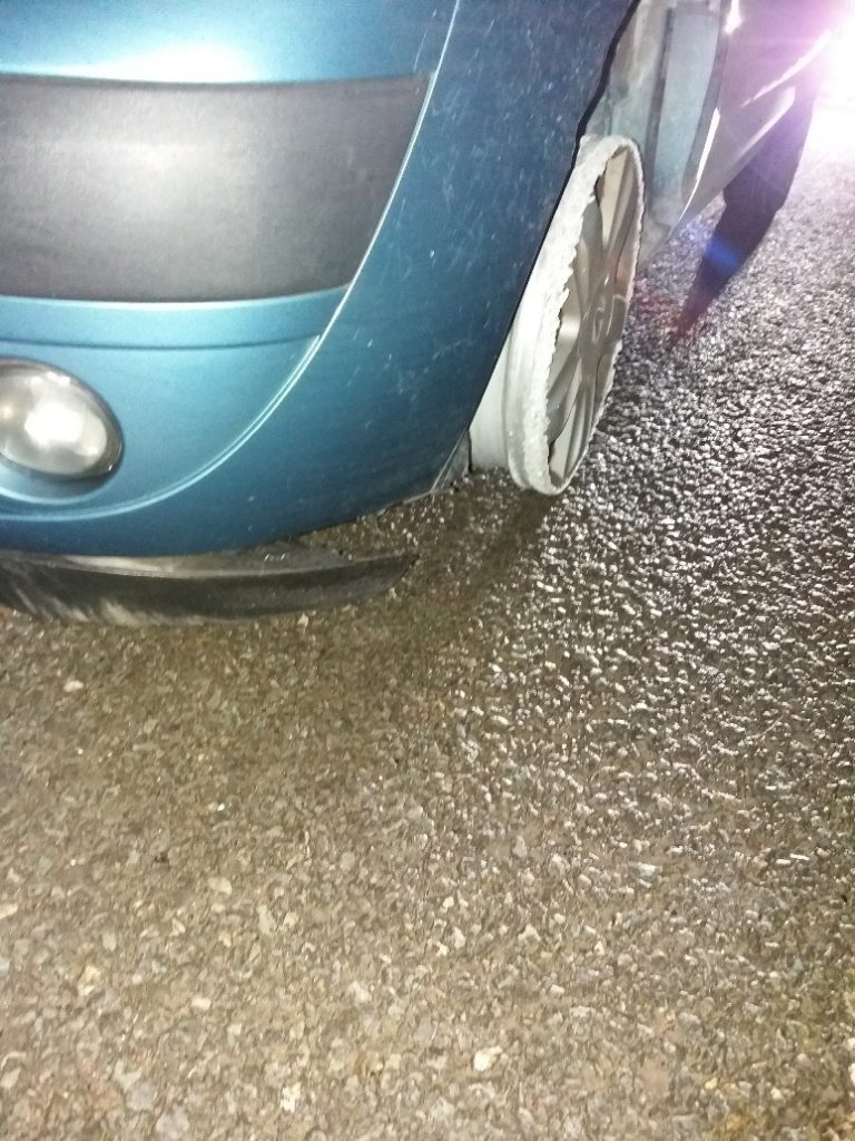E’ successo in Regno Unito, esattamente nell’autostrada M66 del Lancashire, a nord di Manchester: un uomo è stato ‘beccato’ dalla Polizia locale la notte di capodanno, mentre guidava, con un tasso alcolemico sei volte superiore a quello consentito dalla legge, un auto priva delle gomme anteriori. Gli agenti della North West Motorway Police, che hanno fermato la Renault Clio che viaggiava a bordo strada, commentando ironicamente sui social: “dalle foto potete immaginare perchè l’auto abbia attirato la nostra attenzione!”
