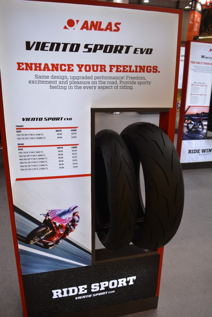 Un’altra novità è Viento Sport EVO, l’evoluzione del Viento Sport, un prodotto che ha una tecnologia molto più avanzata dal punto di vista della carcassa rispetto all’attuale prodotto in commercio, in silice e con tecnologia radiale a zero gradi, che incrementa il grip sul bagnato. Sempre parlando della carcassa, è ad avvolgimento variabile, molto simile a quella utilizzata dal Viento Turismo, apprezzato dal mercato soprattutto per la capacità di copiare l’asfalto e ad adattarsi meglio agli input, dando maggiore feeling al motociclista.