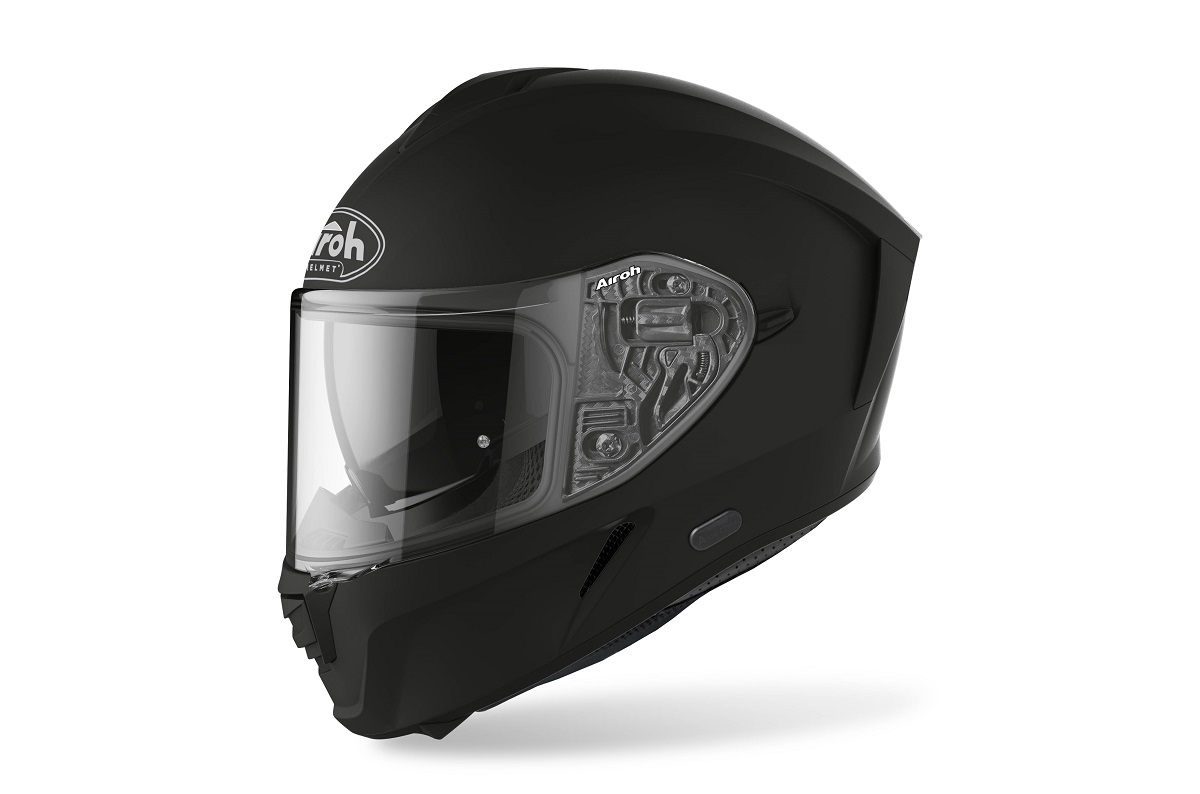 SPARK invece è il nuovo casco integrale di Airoh in HRT (High Resistant Thermoplastic), che con le sue linee aerodinamiche e slanciate è adatto per ogni utilizzo su strada. Sviluppato su 2 diverse misure di calotte esterne, è provvisto di Visiera Extra-Wide, Sun Screen Visor integrata e Bluetooth-Ready. Stop Wind e Pinlock completano la dotazione di un casco dalle caratteristiche da top di gamma.