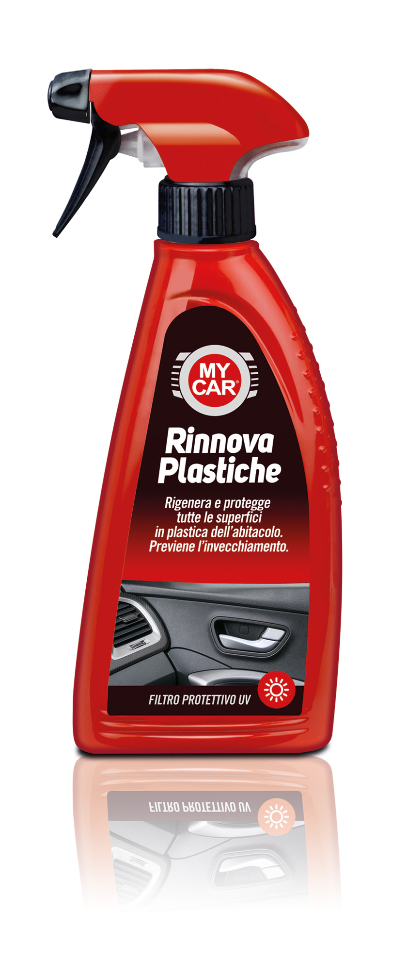 Dall’altra sulle superfici in plastica e gomma con il Rinnova Platiche di My Car che, grazie alla presenza di polimeri siliconici di ultima generazione è in grado di detergere profondità ed in modo efficace su tutte le superfici in plastica e gomma dall’auto, ripristinando il colore e la brillantezza originaria. Prezzo consigliato: 6,62€