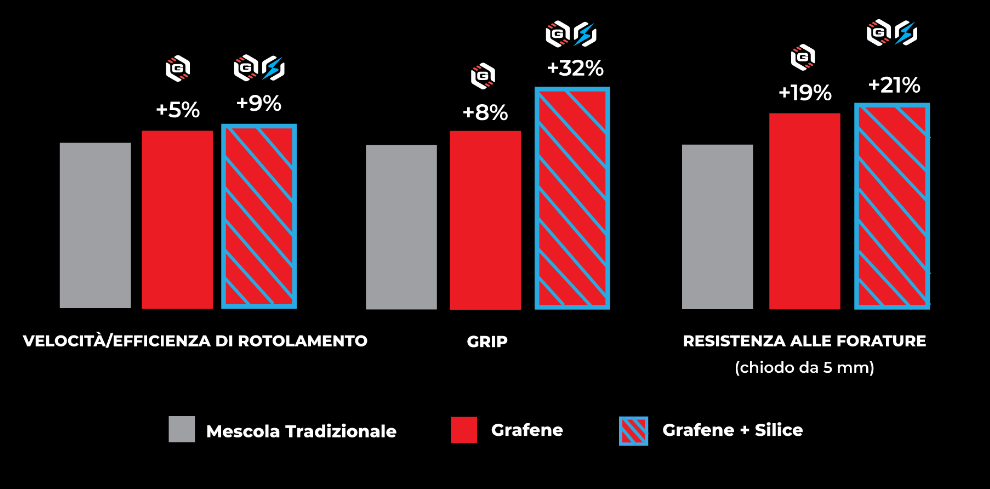 Si allenano duramente per le Granfondo, o altre gare amatoriali, e pretendono che ogni componente della loro bicicletta sia all’altezza della loro determinazione – pneumatici in primis. Vogliono velocità (e chi non la vorrebbe?) ma non accettano compromessi su durabilità e resistenza alle forature. Partendo dall’esperienza maturata nella realizzazione di pneumatici ad alte prestazioni per i professionisti, i nostri ingegneri hanno aggiunto la durabilità della carcassa in nylon e l’efficienza nel rotolamento, il maggiore grip e il minore consumo offerto dalla nuova mescola con Silice e Grafene.