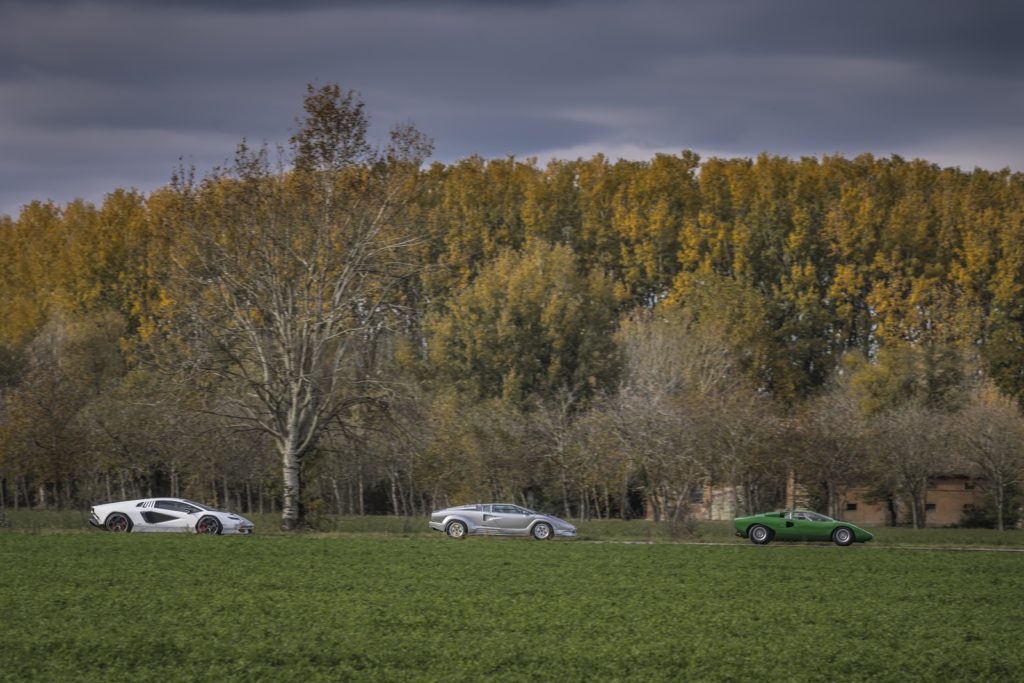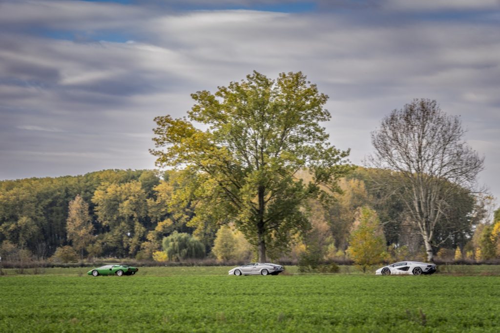 In quest’occasione speciale la neonata supersportiva è stata accompagnata da due delle sue antenate più importanti, la prima Countach LP 400 e l’ultima Countach 25° anniversario, prodotti.
