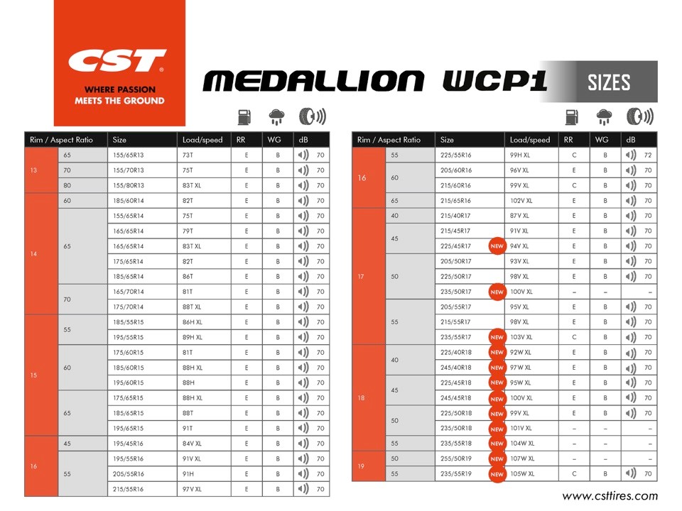 CST Tires implementa le misure disponibili del CST Medallion Winter WCP1. I tasselli 3D, dotati di un intaglio interno che va a incastrarsi con la lamella adiacente in presenza di una qualsiasi deformazione delle stesse, migliorano il comportamento del pneumatico riducendone la deformazione e migliorandone le prestazioni. Più in generale, le lamelle 3D garantiscono una perfetta aderenza in curva e rendono possibile accelerare più rapidamente, anche su strade coperte di neve e/o ghiacciate. Un altro aspetto del nuovo CST Medallion Winter WCP1 è la mescola del battistrada ricchissima di silice in grado di entrare subito in temperatura, e di mantenerla, garantendo sempre ottimo attrito e aderenza anche in presenza di climi particolarmente freddi.