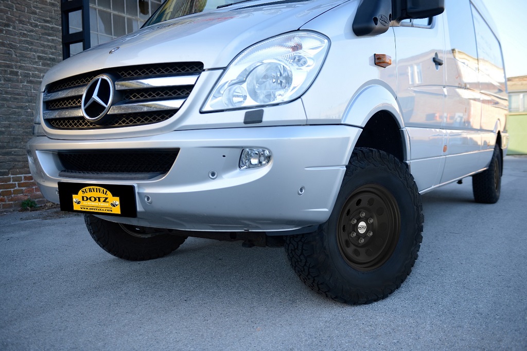 La capacità di carico per cerchi e pneumatici è un argomento importantissimo soprattutto nel contesto dei camper. Il nuovo Dotz MODULAR è stato sviluppato appositamente per gli allestimenti della linea Mercedes Sprinter W906 e W907. Con una capacità di carico fino a 1.350 kg e la dimensione del pneumatico 245/75R16, si è perfettamente attrezzati per un avventuroso viaggio fuoristrada, anche a bordo di uno Sprinter.