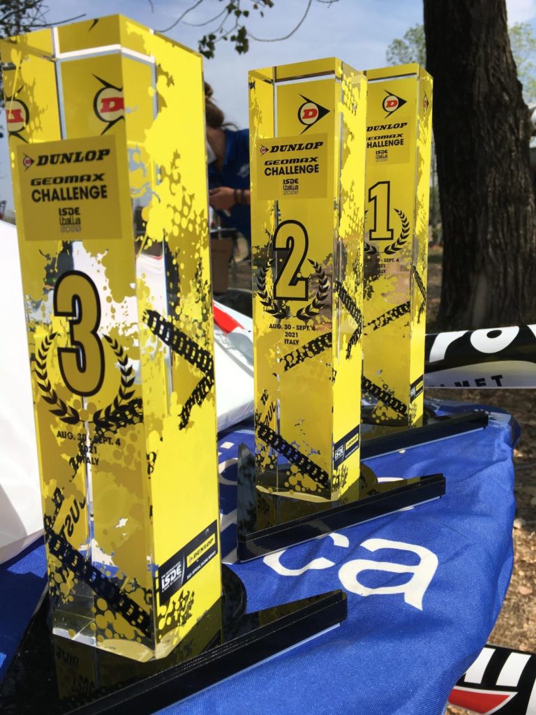 Dunlop, in qualità di sponsor ufficiale per l’ISDE, ha introdotto una sfida nella sfida grazie al Dunlop Geomax Challenge. Questa competizione è stata creata per sostenere i piloti e i club amatoriali: la competizione è stata intensa e affascinante come quella al primo posto generale.