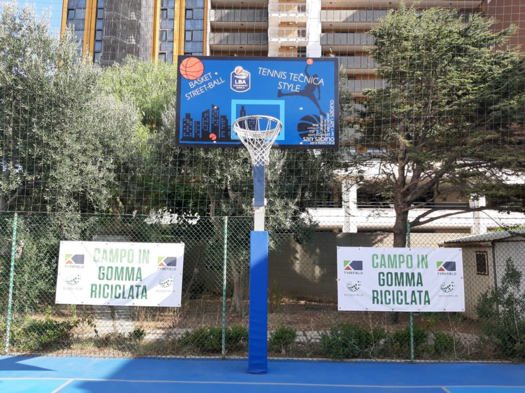 La particolarità dei due playground è infatti quella di essere stati realizzati grazie ad oltre 2.000 kg ciascuno di gomma riciclata dai Pneumatici Fuori Uso, un materiale versatile e dalle eccezionali prestazioni che consente di ottenere superfici sportive di altissimo livello e ambientalmente sostenibili. Un’innovazione tecnologica promossa e supportata da Ecopneus, la società senza scopo di lucro principale operatore nella gestione dei Pneumatici Fuori Uso in Italia, per favorire un sempre maggiore impiego della gomma riciclata in quegli impieghi ad alto valore aggiunto – come appunto i campi da basket – dove il suo utilizzo consente di migliorare le performance rispetto alle soluzioni convenzionali e salvaguardare la salute degli atleti, contribuendo inoltre all’economia circolare in Italia.