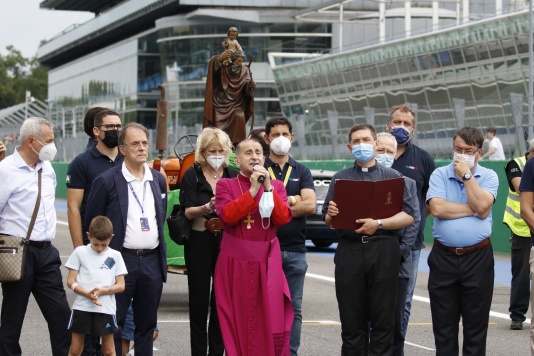 Alle 12.30, preceduti dalla statua lignea di San Cristoforo, hanno sfilato invece in parata nel Tempio della Velocità i mezzi agricoli della Coldiretti, le auto di servizio delle Forze dell’Ordine, della Protezione Civile e della Croce Rossa Italiana, le vetture del pubblico e le moto del Moto Club Monza. Tutti i mezzi presenti hanno ricevuto la benedizione dell’Arcivescovo di Milano Mons.