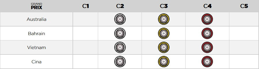 Per la prossima stagione di Formula 1 2020, Pirelli ha nominato le seguenti mescole per I Gran Premi d’Australia (Melbourne, 13-15 marzo), Bahrain (Sakhir, 20-22 marzo), Vietnam (Hanoi, 3-5 aprile) e Cina (Shanghai, 17-19 aprile).