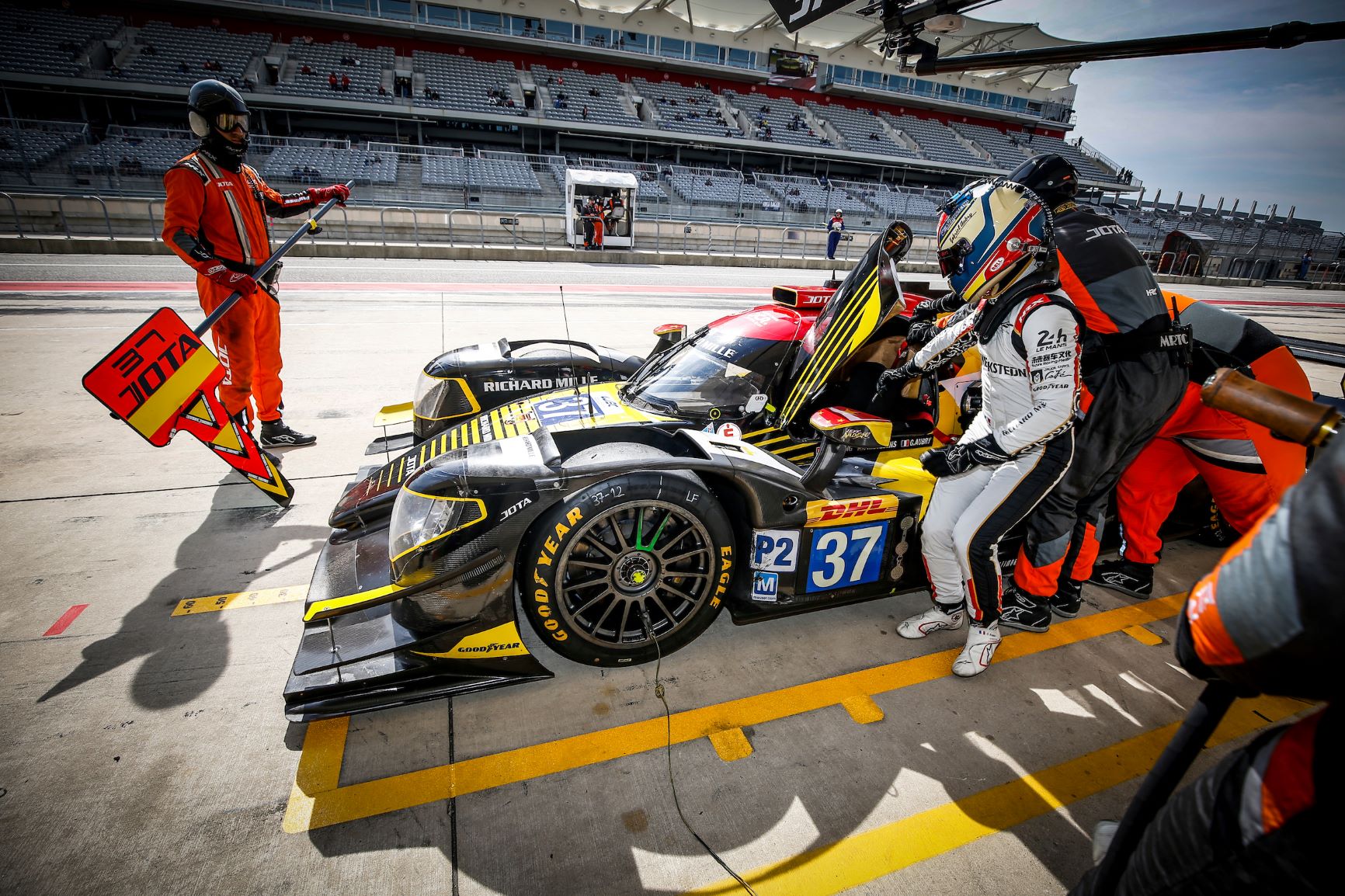 Una prima mezz’ora di gara molto movimentata sul circuito di Formula 1 del Texas ha visto Stevens lottare per il quarto posto fino al testacoda con l’ex compagno di F1 della Caterham, Giedo Van Der Garde, che lo ha fatto precipitare in fondo al gruppo e che, dopo la partenza lenta della vettura Jota, ha costretto le due vetture equipaggiate Goodyear a una lotta serratissima di cinque ore e mezzo per rimontare dalle retrovie del Gruppo LMP2.