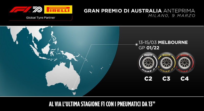 Come lo scorso anno, per la gara in Australia sono state nominate C2, C3 e C4 quali rispettivamente P Zero White hard, Yellow medium e Red soft.Pirelli ha nominato nuovamente queste tre mescole date le prestazioni molto positive dello scorso anno: C2, C3 e C4, infatti, si adattano al meglio alle caratteristiche del tracciato di Melbourne: lo scorso anno sono state usate tutte e tre nelle strategie di gara.