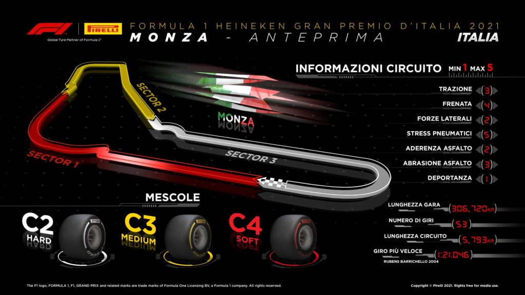 Pirelli sceglie tre mescole centrali per il Gran Premio d’Italia 2021, la gara di casa, e spiega perché.