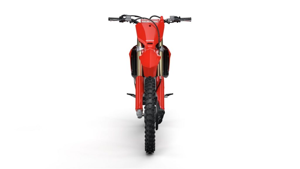Se nella versione 2019 il motore Unicam a quattro valvole da 449,7 cc ha registrato un aumento della potenza massima e della coppia, rispettivamente, di 1,8 kW e 2 Nm e una risposta più consistente ai bassi regimi, per la versione 2020 il suo sviluppo si era focalizzato su alcune migliorie come l’ottimizzazione della mappatura dell’impianto PGM-FI nonché del sistema launch control HRC, introducendo inoltre il sistema Honda Selectable Torque Control. Per la versione 2021, con aggiornamenti tratti direttamente dalla CRF450RW HRC con cui Tim Gajser ha vinto il campionato mondiale 2019, l’attenzione si è incentrata sulla guidabilità ai regimi medio-bassi e sulla riduzione di peso, con un ulteriore miglioramento delle prestazioni in curva.