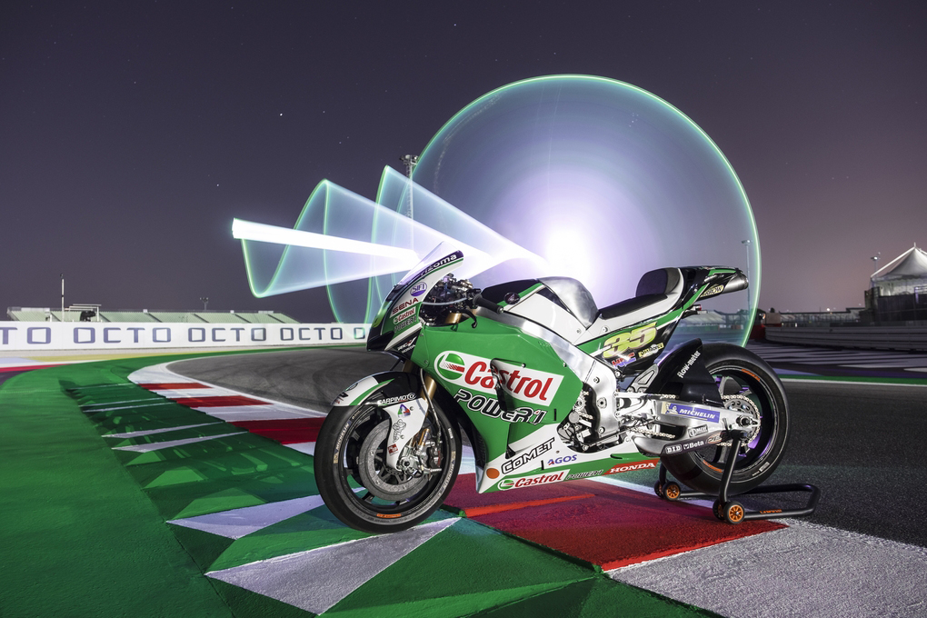 La mostra, ideata dalla fotografa Diana Bovoloni, include tra i soggetti protagonisti della galleria online anche la Honda RC213V MotoGP del Team LCR. L’immagine, realizzata dalla stessa Bovoloni, è uno scatto singolo a lunga esposizione, creato con un effetto luminoso “a mano libera” con la tecnica del Light Painting. La forma circolare riprende i colori della livrea e fa risaltare le linee stilistiche delle due ruote. L’effetto finale ad alto impatto visivo ha come risultato quello di far sembrare la moto un oggetto futuristico.
