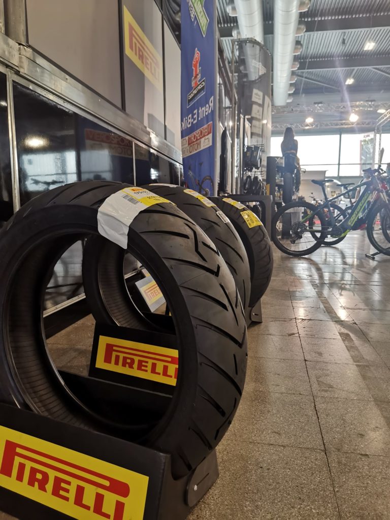 Idealgomme Eventi con uno stand tutto nuovo ha catalizzato l’attenzione di un pubblico eterogeneo: infatti, oltre alla gamma di pneumatici dedicata ai vari campi del settore moto, dalla linea scooter al racing, é stata data ampia visibilità ai prodotti Pirelli dedicati al mondo delle bici in tutte le sue accezioni, dalle bici da strada alle MTB, anche a pedalata assistita.