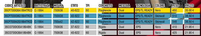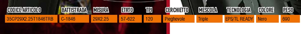 - pieghevole -> anche il cerchietto pieghevole (realizzato in Aramid) si mantiene nella corretta posizione contro il cerchio, ma la copertura risulta più leggera.