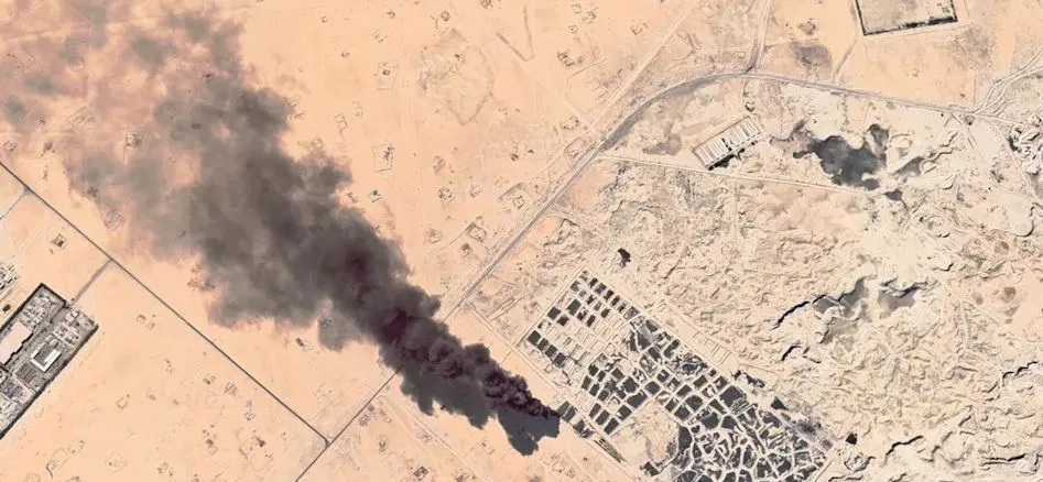 Le impressionanti immagini del fumo denso si vedono anche dal satellite, perchè la colonna di fumo è immensa. Si ritiene che i pneumatici provengano sia dal Kuwait che da altri paesi che hanno pagato per scaricare i loro pneumatici nel sito.