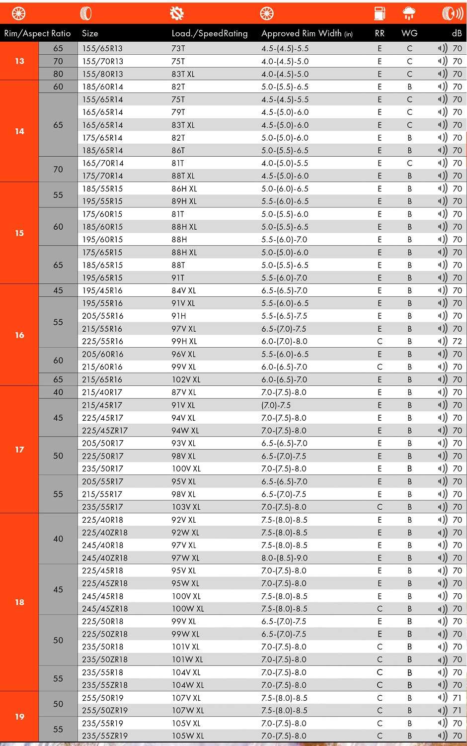 Il Medallion Winter WCP1 è disponibile (catalogo 2020/21) nelle misure che vanno da 155/65 R13 a 255/50 ZR19-235/55 ZR19