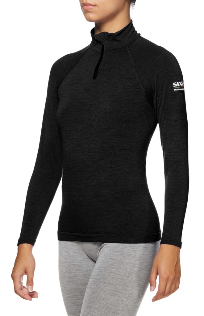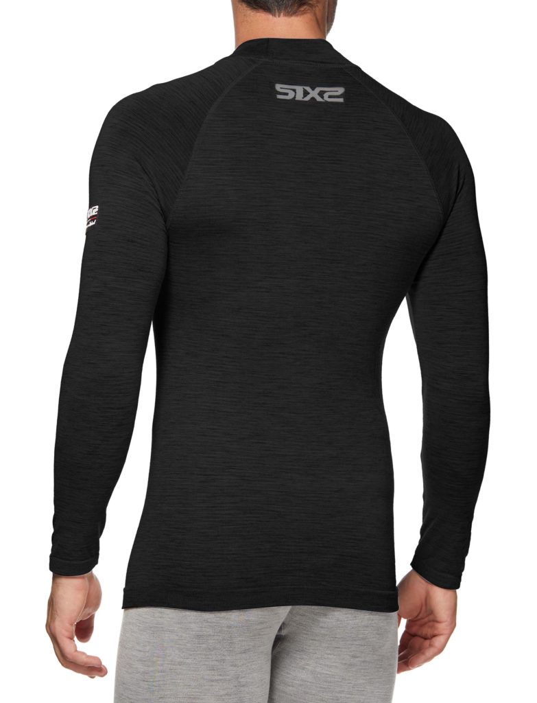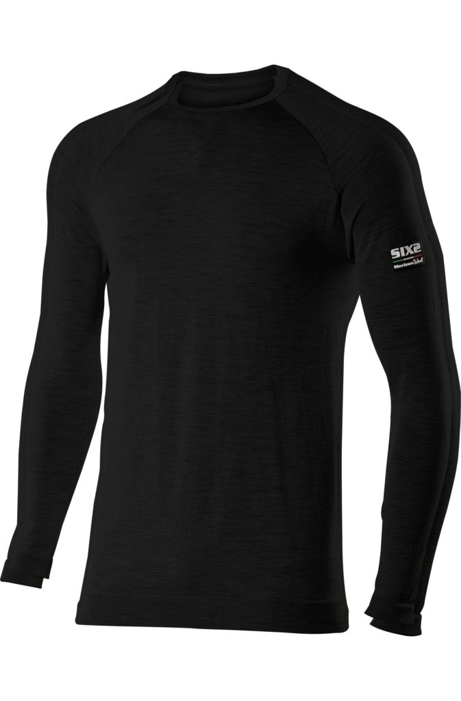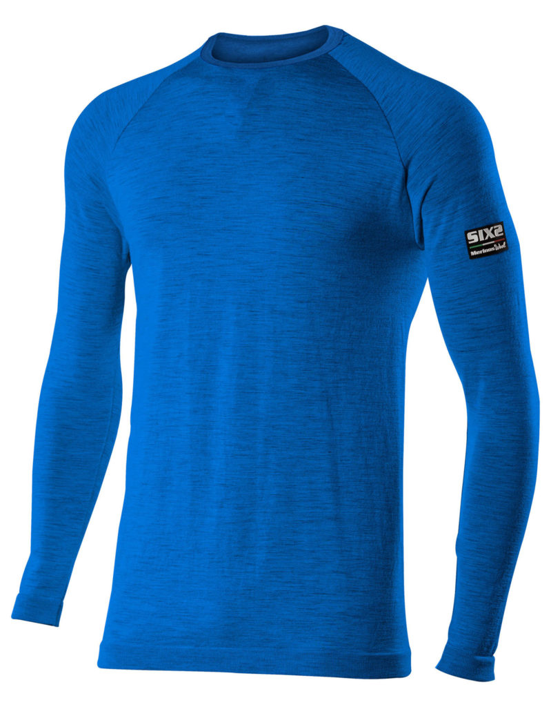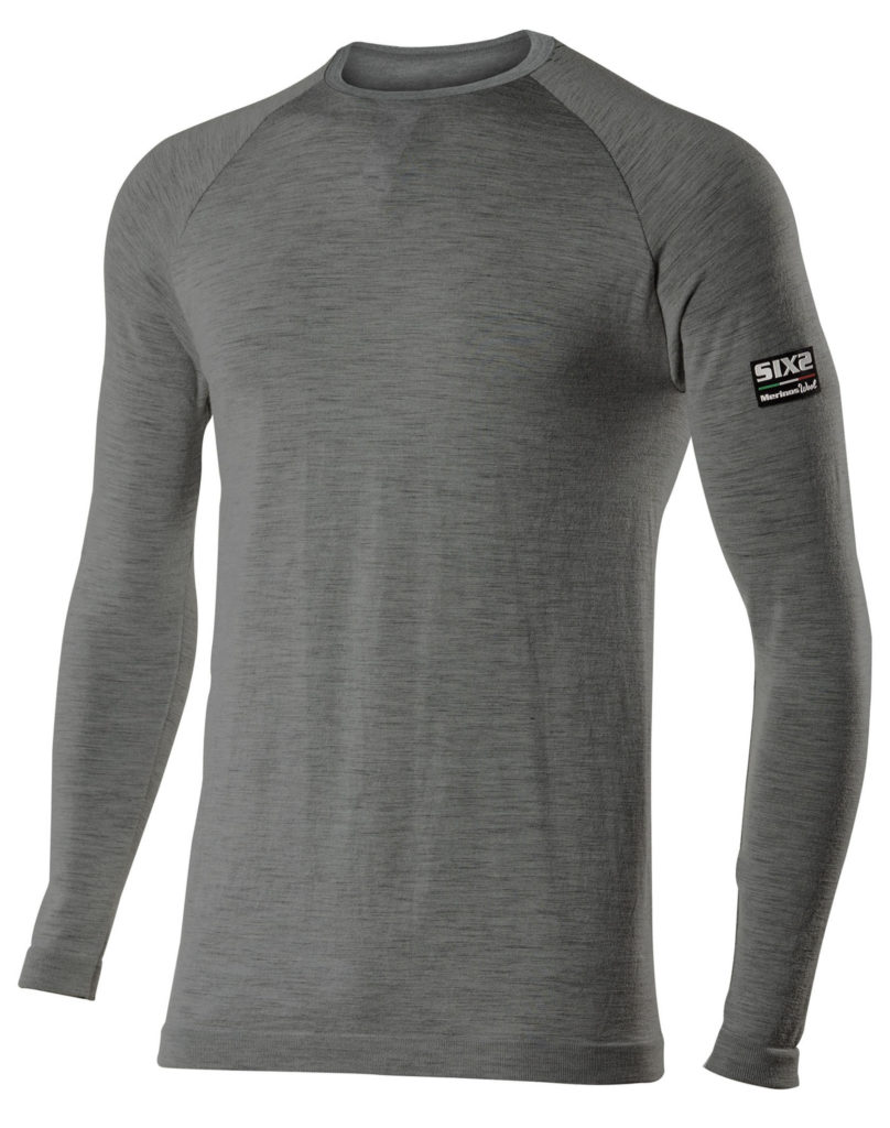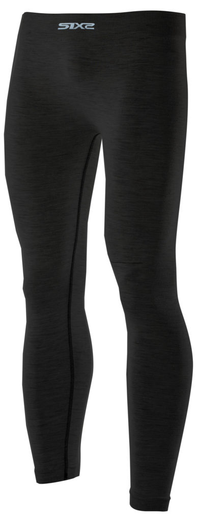 Poiché la lana merino è un po’ più ruvida delle altre fibre sintetiche usate nella composizione del tessuto, per poter garantire lo stesso livello di comfort di qualsiasi altro prodotto SIXS, si è scelto di posizionare il polipropilene all’interno, a contatto diretto con la pelle, e tenere la lana merino all’esterno. Questa lana ha proprietà termoregolatrici superiori a qualsiasi altra fibra naturale e funge pertanto in maniera eccellente da barriera contro il freddo. Il polipropilene, invece, è un filato idrofobo, ovvero non assorbe liquidi, e permette una gestione del sudore ottimale. Il carbonio infine aiuta nella termoregolazione, migliora la microcircolazione corporea ed è antistatico e battereostatico (combatte i cattivi odori).