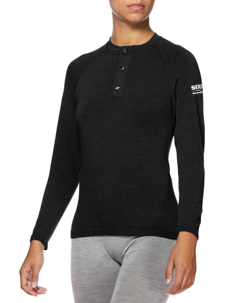 Una maglia girocollo con apertura frontale a tre bottoni a maniche lunghe semplice ed estremamente versatile in Carbon Merino Wool, ideale per l’utilizzo come intimo o strato intermedio.