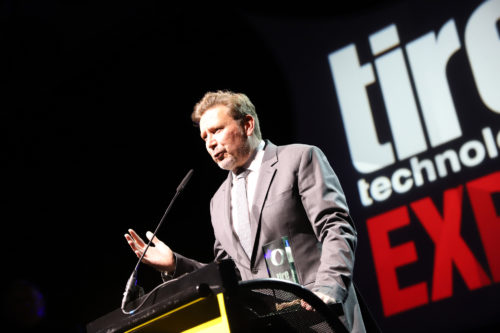 Il direttore della comunicazione tecnica e scientifica della Michelin, Cyrille Roget, riceve il premio Tyre Technology of the Year