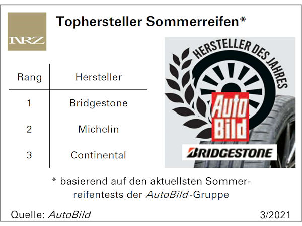 Vince dunque la classifica delle migliori gomme estive 2021 il brand giapponese Bridgestone. Gli esperti citano in particolare due prodotti, il Turanza T005 e il nuovissimo Potenza Sport per “le prestazioni equilibrate e le dinamiche di guida convincenti”.