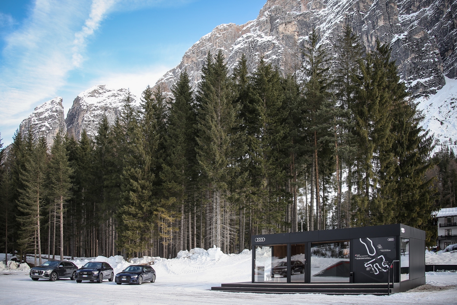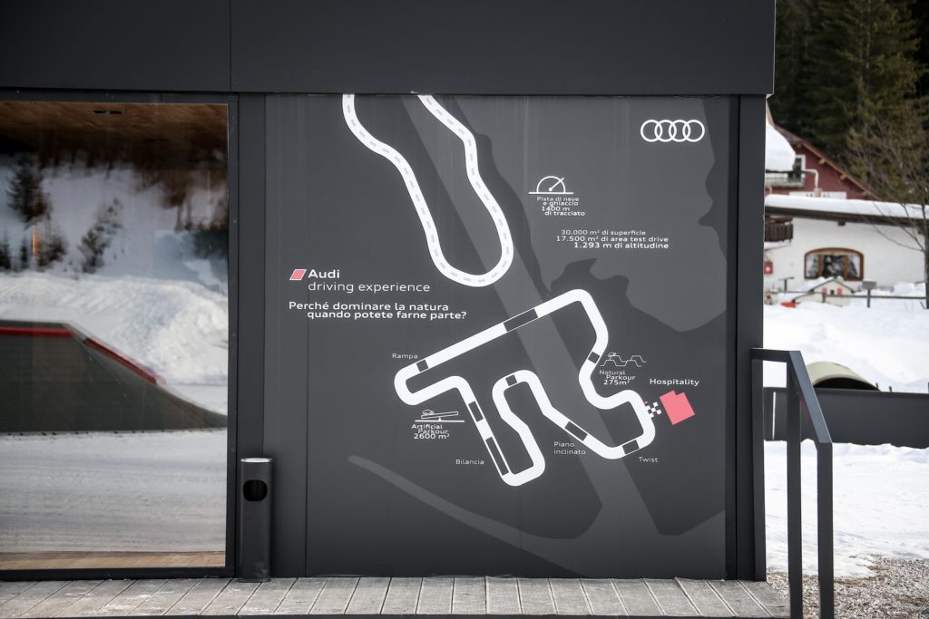 Un importante tassello del percorso intrapreso da Audi sul territorio è l’intervento che Audi ha portato avanti sul territorio ampezzano con la riqualificazione della superficie di Fiames, a 4 km dal centro di Cortina. A seguito dell’accordo siglato con il Comune, l’area è stata trasformata in un proving ground per la sportività sostenibile, dedicato alle attività di driving experience per i modelli ad alta elettrificazione della gamma Audi.