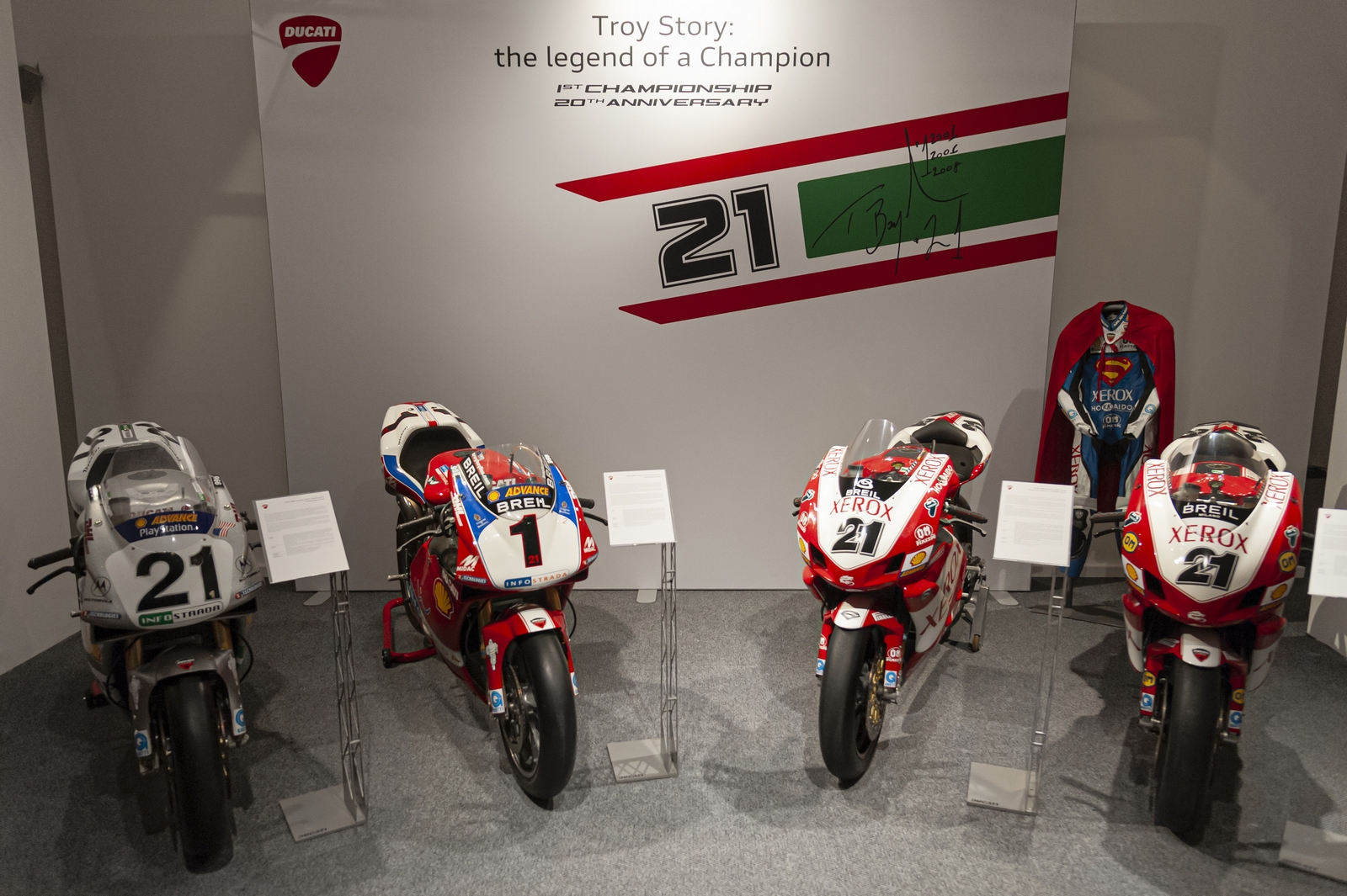 È proprio per celebrare il 20° anniversario da quel primo titolo mondiale vinto nel campionato Superbike nel 2001, che Ducati ha allestito all’interno del Museo Ducati l’esposizione temporanea con contenuti inediti ed esclusivi per i suoi fan vicini e lontani.