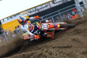 Nella classe MXGP Tim Gajser si è imposto per la prima volta sulla pista di Lommel. Lo sloveno è sempre più solo in testa al Campionato ed avrà la possibilità di aggiudicarsi il titolo nel prossimo Gran Premio ad Imola. Ottimo secondo posto per Romain Febvre che ha ottenuto la vittoria nella prima manche. Jeremy Seewer, quarto, ha mantenuto la seconda posizione in Campionato. Jeremy Van Horebeek, in sella alla sua Honda privata, ha bissato il quinto posto ottenuto lo scorso fine settimana a Loket.
