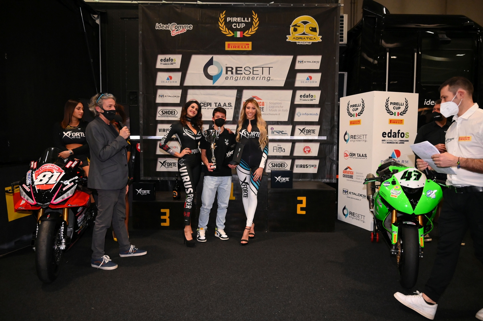 Graditissima la presenza di Fabien Narizuka in rapprentanza di Shoei, Rosario Forte per il brand X Forte, ormai storico partner del campionato, Cristian Priami, CEO di Viruspower e Guglielmo Tarizzo per Gullyracing.