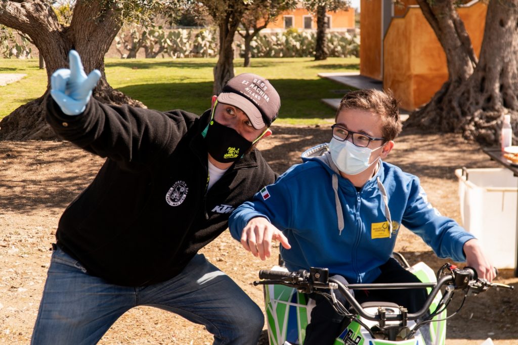 Molti i sorrisi a Feudo Maccari; circa tre ore di pura gioia per oltre 20 bambini con disabilità, accompagnati dai loro genitori: in sella a due moto e un quad elettrici assieme ai piloti del team di Vanni Oddera tra salti, grazie a piccole rampe, e un simulatore che permette di emulare il movimento della tavola da surf.