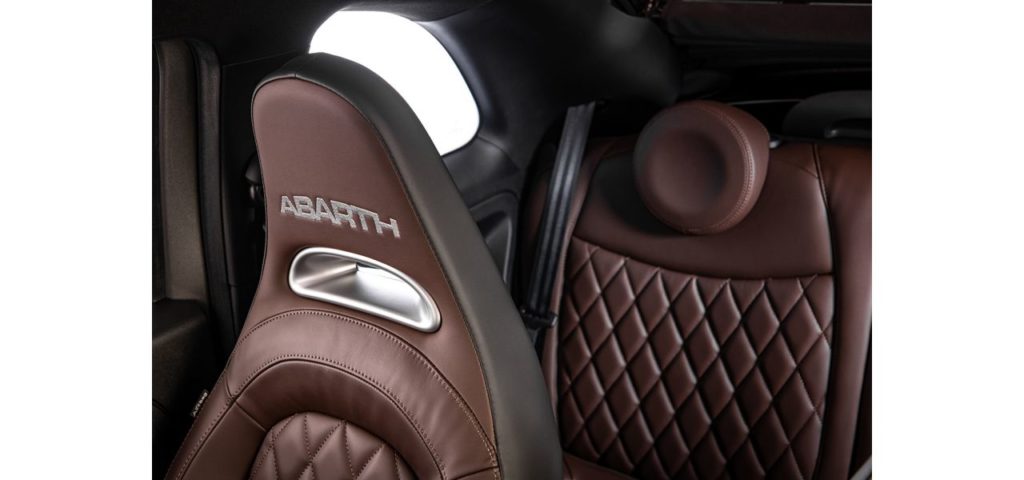 La 595 Turismo presenta interni rinnovati, a cominciare dagli esclusivi sedili in pelle che si rinnovano nelle finiture, offrendo la possibilità di scegliere tra diverse nuance di colori, tra cui il nuovo Helmet Brown.