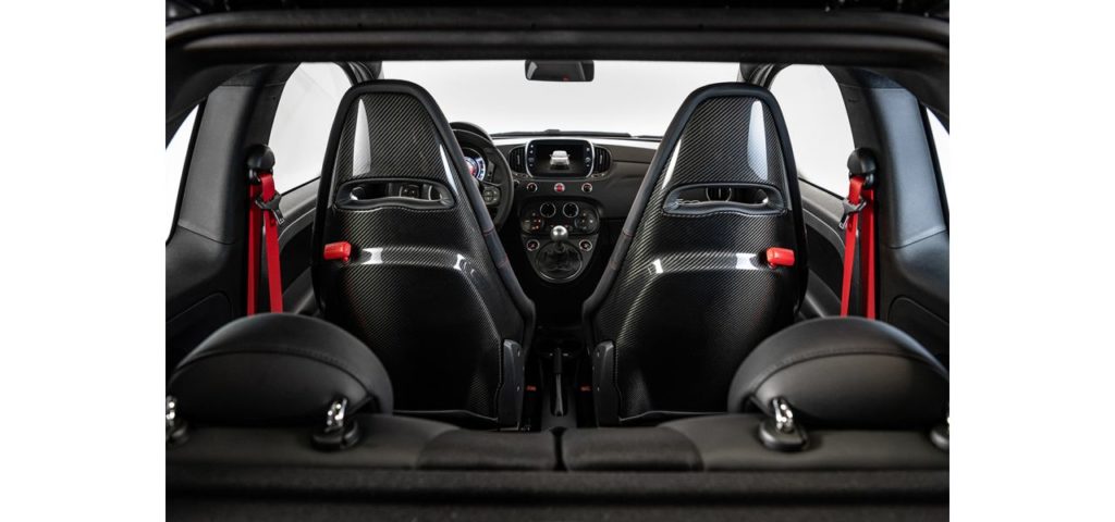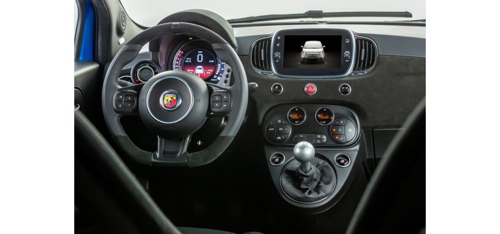 Rimanendo in tema di colori la grande novità della 595 Competizione riguarda invece un nuovo Blu Rally, un colore opaco ispirato alla Fiat 131 Abarth Rally degli anni Settanta, mentre i nuovi cerchi in lega da 17” strizzano l’occhio a quelli della Lancia Delta Rally Integrale degli anni Novanta. A rendere la livrea ancora più sportiva il body kit in tinta carrozzeria specifico di questa versione e disponibile in abbinamento al nuovo colore Blu Rally o al Nero Scorpione. All’interno, oltre al selettore “Scorpion mode” dal nuovo design, troviamo una nuova offerta di contenuti con cui caratterizzare la vettura, tra cui la plancia in Alcantara, i nuovi sedili in pelle e il pomello del cambio in carbonio.