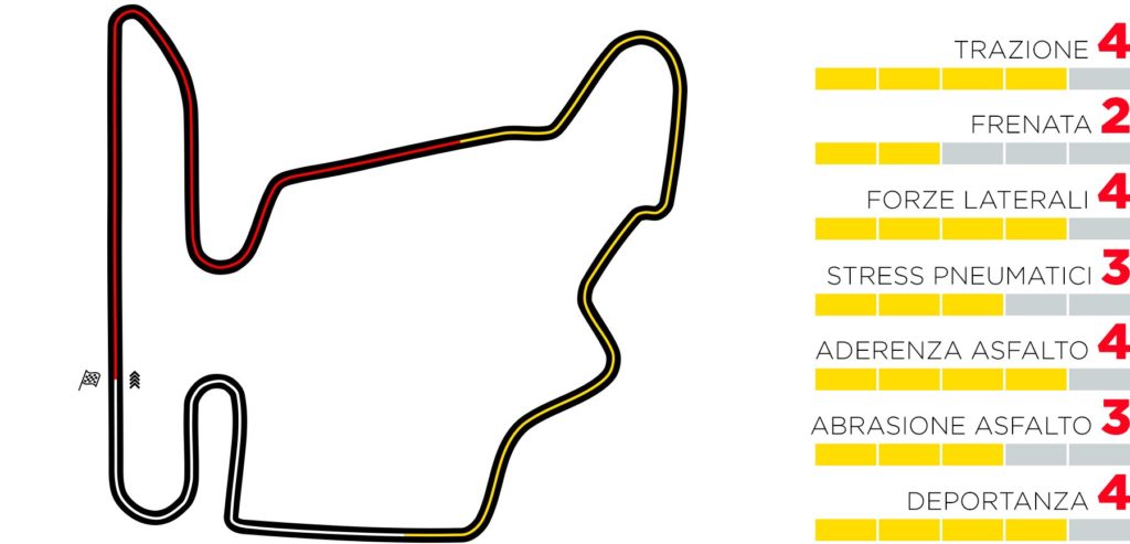 - I livelli di usura e degrado sono generalmente bassi e in passato la strategia più scelta è stata quella a una sosta. Nel 2019, Lewis Hamilton ha vinto con due pit stop, con cinque diverse tattiche tra i primi cinque piloti al traguardo. La gestione del degrado è stata l’elemento chiave della gara.