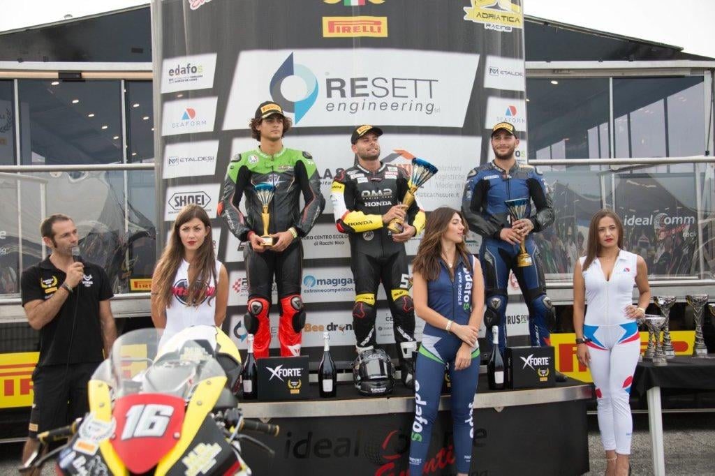 La gara 1 della 600 con un asfalto torrido ha confermato sostanzialmente i valori emersi nelle qualifiche, con Chiarini del team Black racing che ha strappato a Petrarca la terza casella del podio.