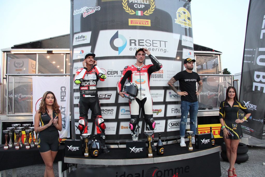 La classe 600 vedeva Niccolò Castellini del team SpeedOne in vantaggio sul giovanissimo Nicola Chiarini del team Black racing, sull’alfiere del team NTR Lorenzo Petrarca e Fabrizio Lai, portabandiera del team Speedybike in quarta posizione in campionato.