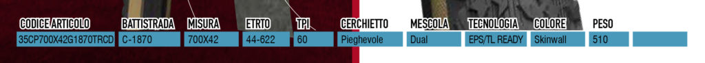 E’ realizzato con mescola “Dual” che ha una parte centrale del battistrada più dura e resistente mentre la parte laterale risulta più soffice in modo da ottimizzarne l’aderenza.