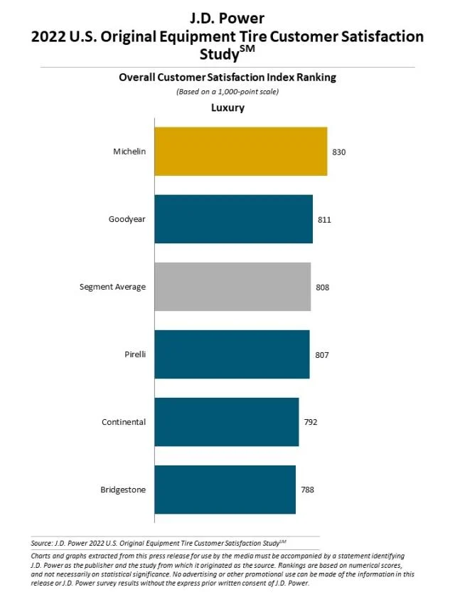 Ogni anno, J.D. Power realizza uno studio che registra la soddisfazione dei clienti statunitensi per quel che riguarda i loro pneumatici montati in primo equipaggiamento.