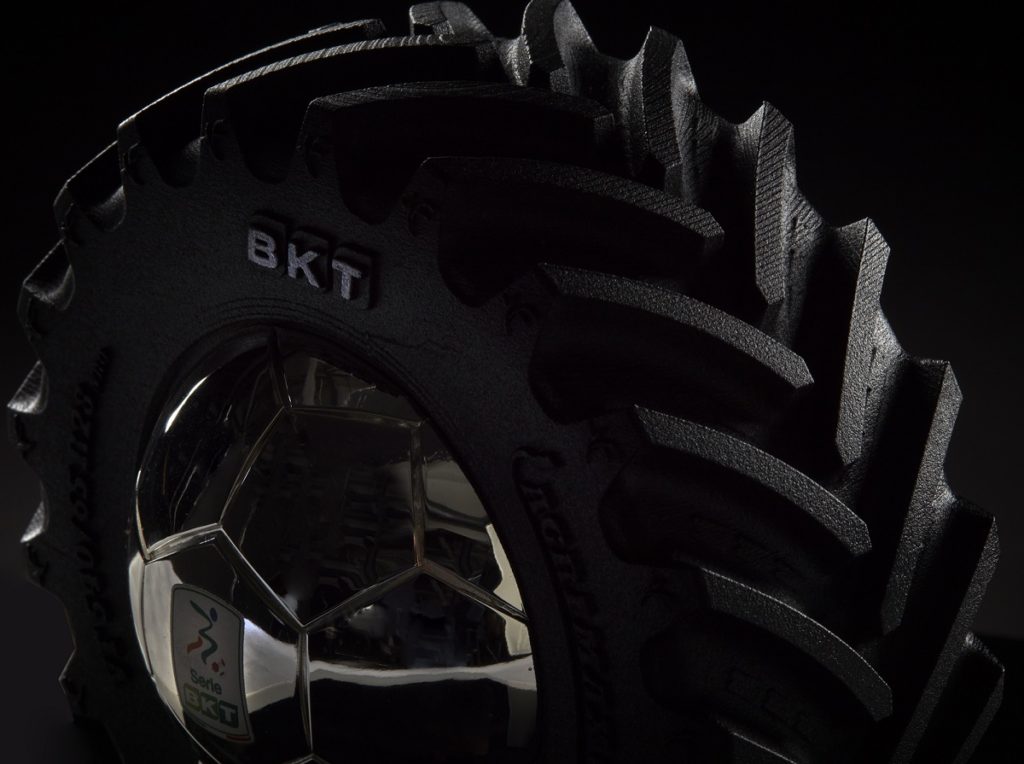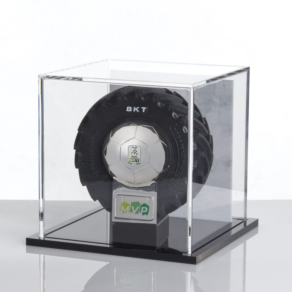 Il trofeo MVP è targato #LasciaIlSegno, l’hashtag lanciato da BKT per la stagione 2021/2022 e la sua realizzazione è il frutto di un importante studio di progettazione. Il trofeo riproduce fedelmente uno pneumatico AGRIMAX FORCE, pneumatico agricolo di punta di BKT, ed è destinato a diventare un ambìto riconoscimento per tutti i giocatori del torneo.